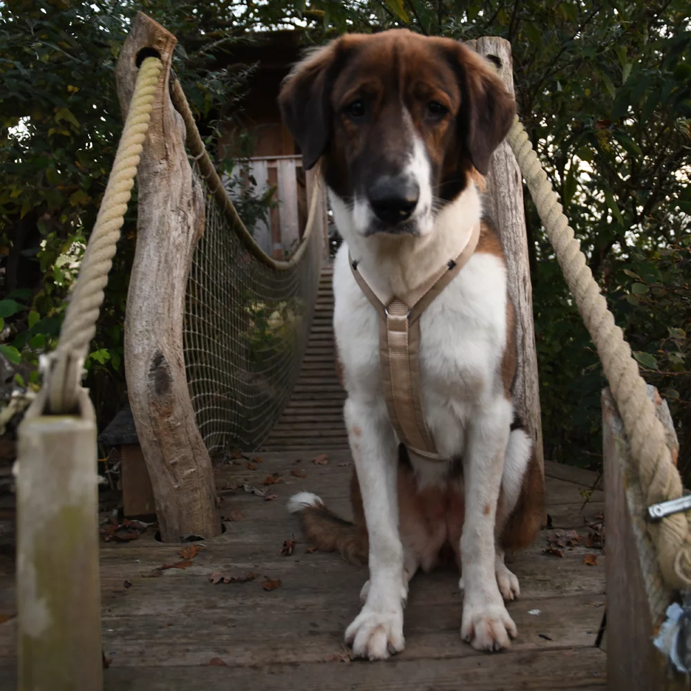 牽繩扣位置適中,保持重心在身體中央,減少向前拉暴衝